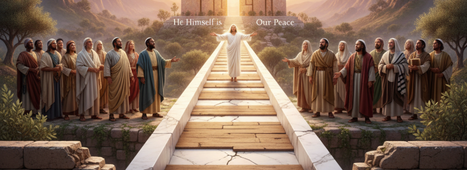 以弗所書2:11–22 11所以你們應當記念:你們從前按肉體是外邦人,是稱為沒受割禮的;這名原是那些憑人手在肉身上稱為受割禮之人所起的。 12那時,你們與基督無關,在以色列國民以外,在所應許的諸約上是局外人,並且活在世上沒有指望,沒有神。 13你們從前遠離神的人,如今卻在基督耶穌裡,靠著他的血,已經得親近了。 14因他使我們和睦(原文作:因他是我們的和睦),將兩下合而為一,拆毀了中間隔斷的牆; 15而且以自己的身體廢掉冤仇,就是那記在律法上的規條,為要將兩下藉著自己造成一個新人,如此便成就了和睦。 16既在十字架上滅了冤仇,便藉這十字架使兩下歸為一體,與神和好了, 17並且來傳和平的福音給你們遠處的人,也給那近處的人。 18因為我們兩下藉著他被一個聖靈所感,得以進到父面前。 19這樣,你們不再作外人和客旅,是與聖徒同國,是神家裡的人了; 20並且被建造在使徒和先知的根基上,有基督耶穌自己為房角石, 21各(或作:全)房靠他聯絡得合式,漸漸成為主的聖殿。 22你們也靠他同被建造,成為神藉著聖靈居住的所在。